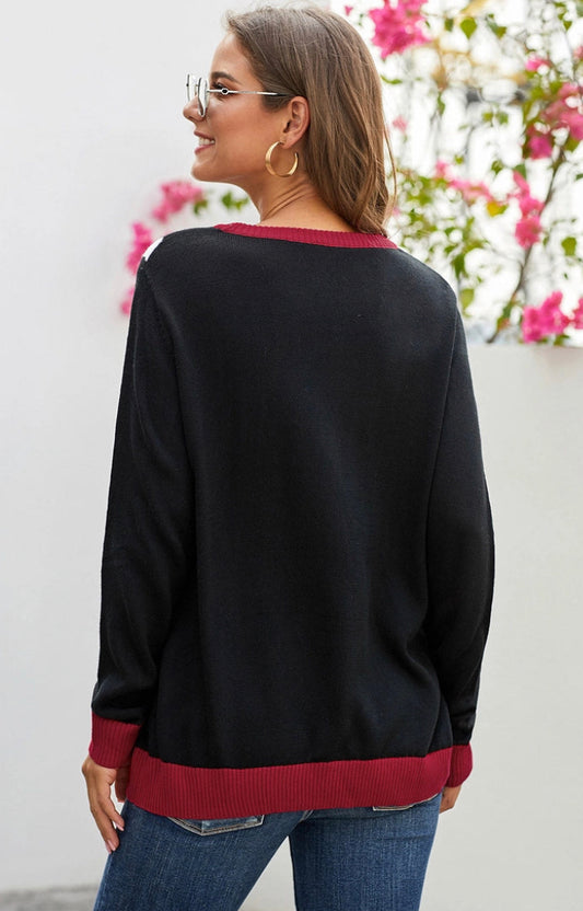 Reindeer Santa Clause Cartoon Print Ugly Christmas Sweater