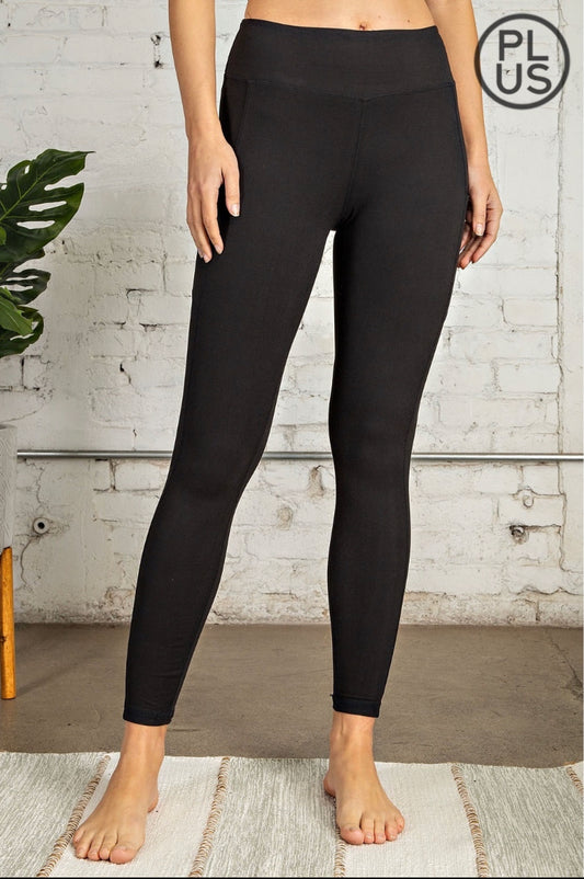 Plus Size Butter Soft Full Length Leggings with Pocket - Black